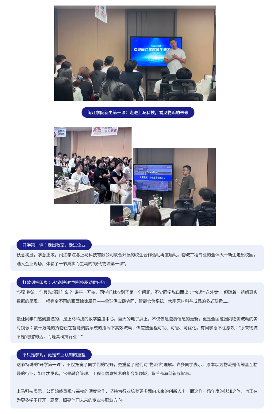 企业动态 | 闽江学院新生第一课:走进上马科技,看见物流的未来