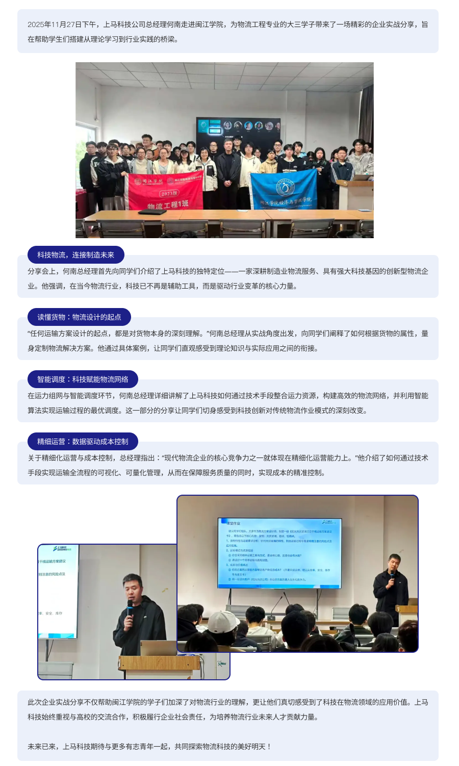 企业动态 | 上马科技与闽江学院学子共探物流未来