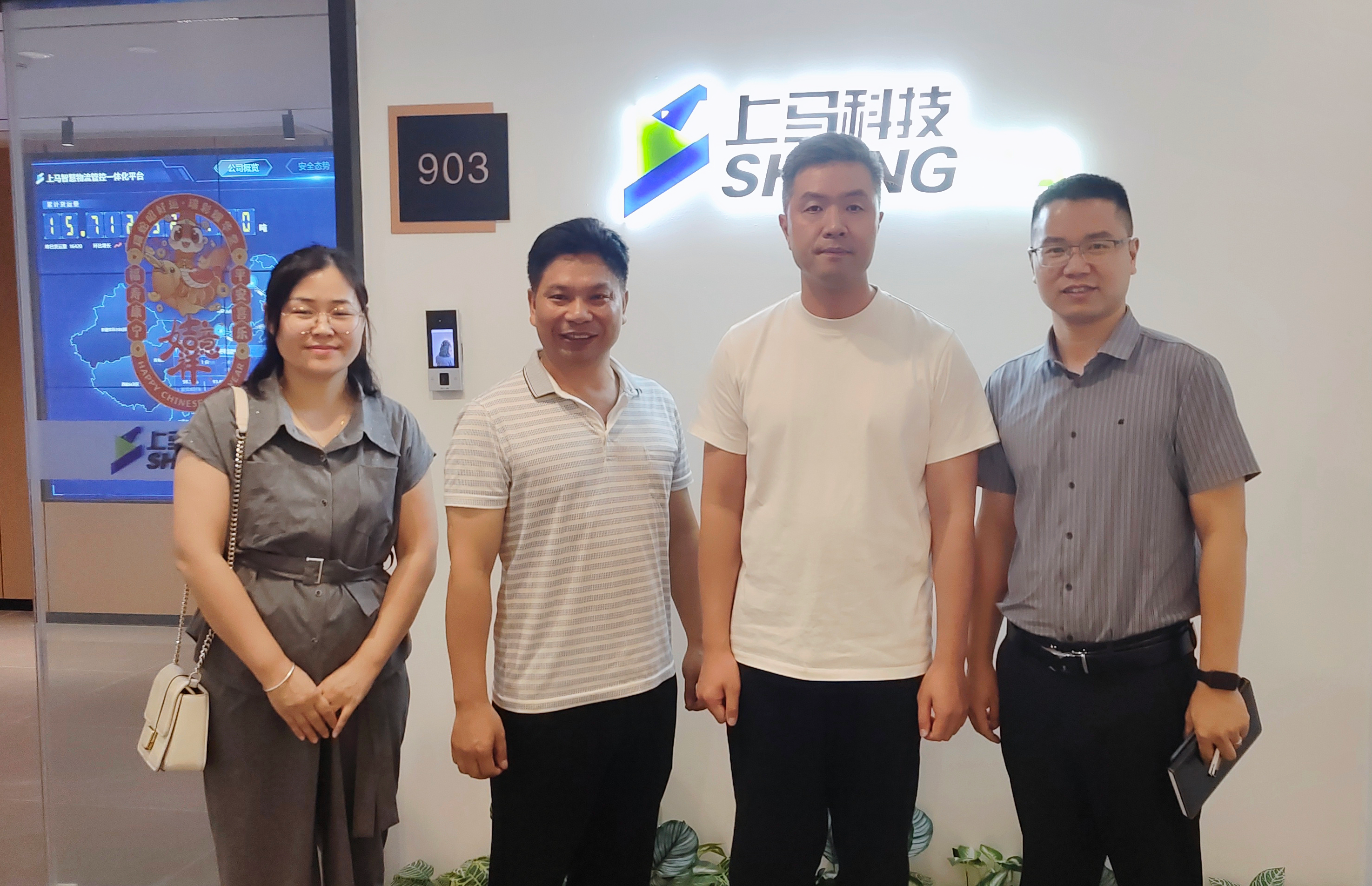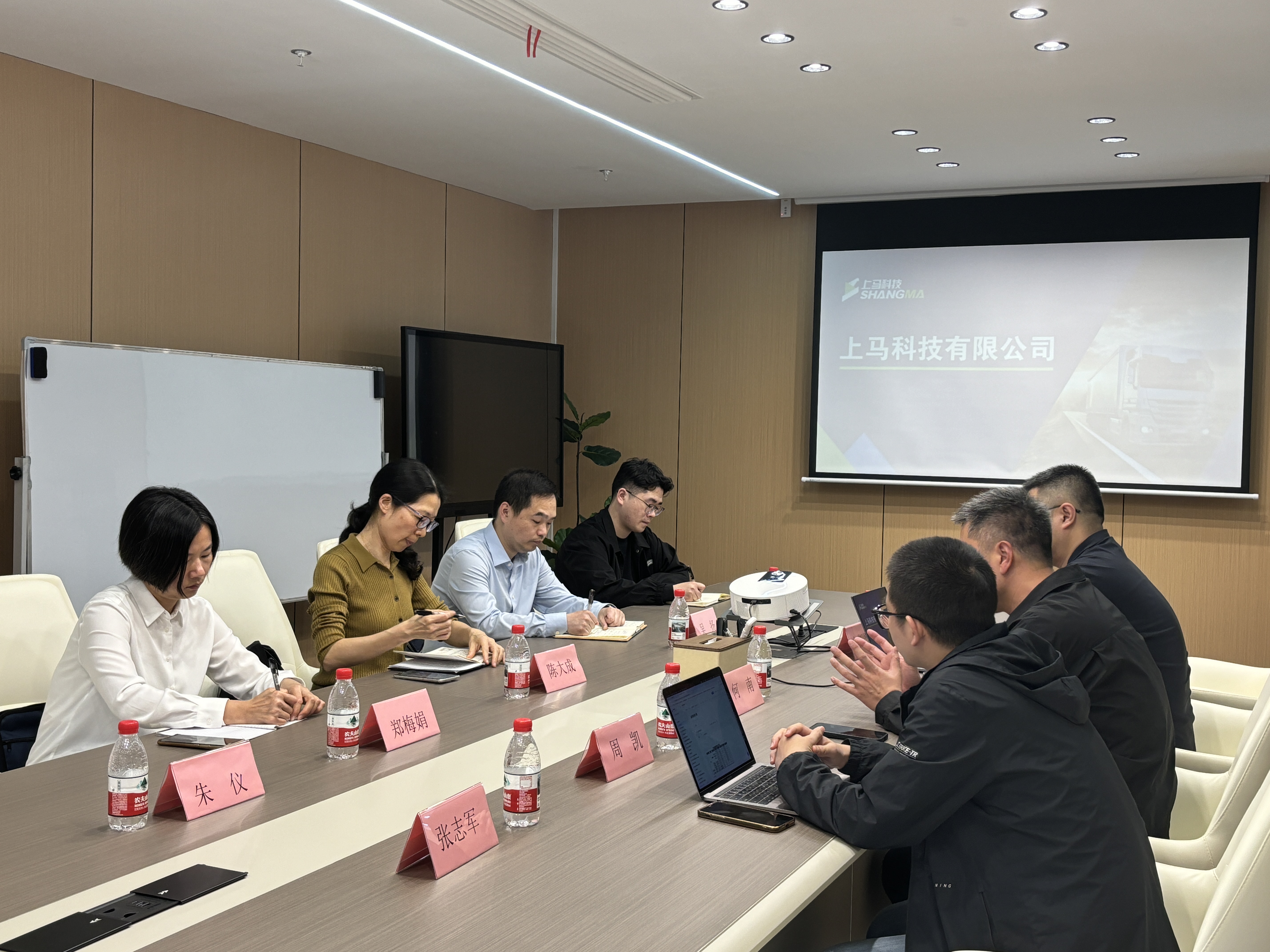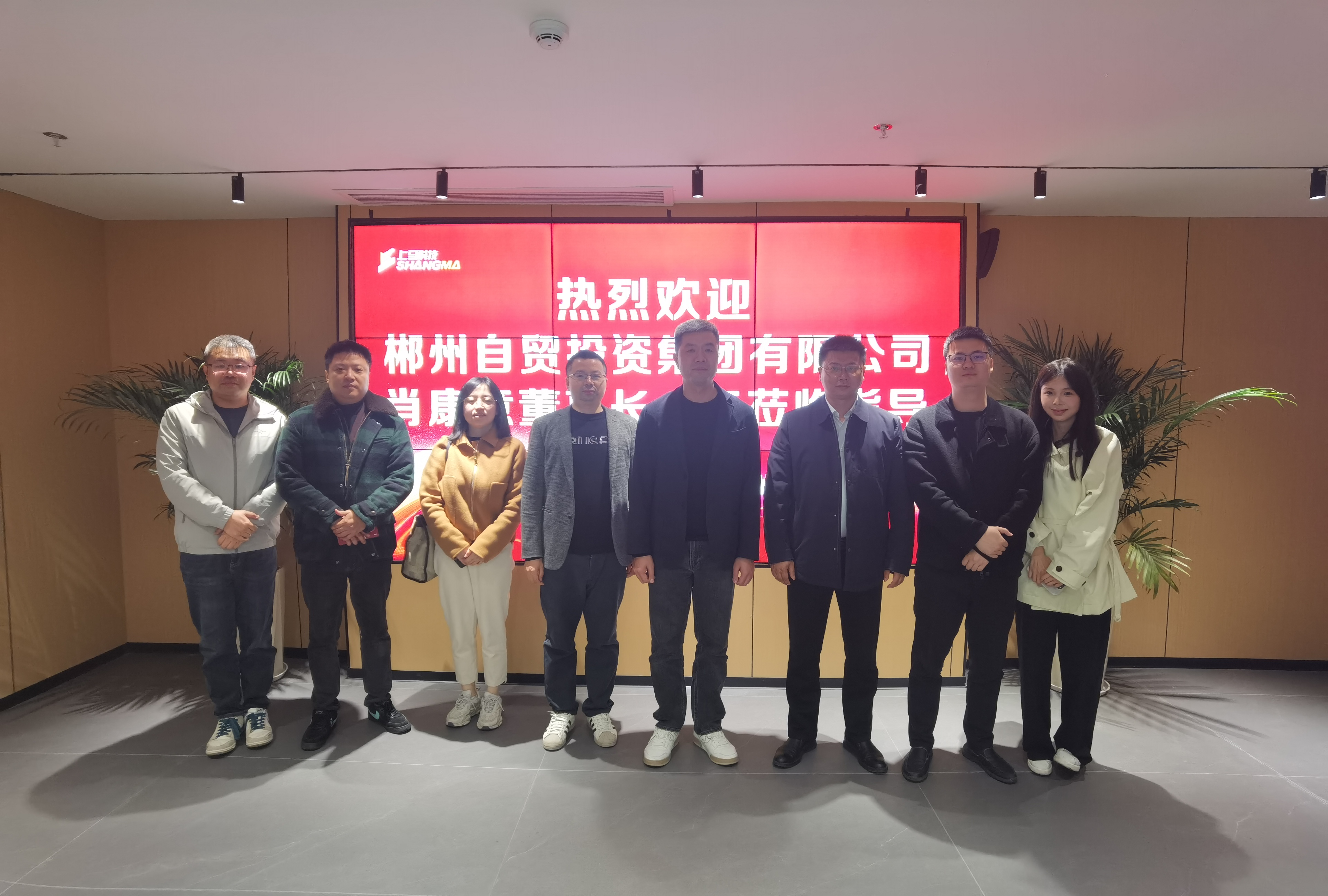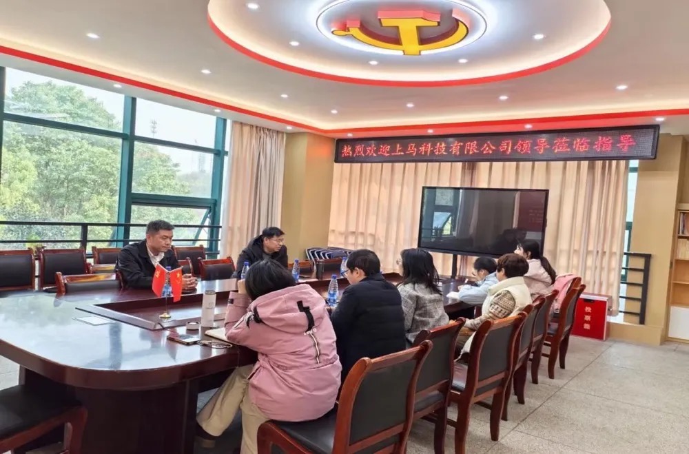 3 月 29 日,郴州自贸投资集团有限公司董事长肖康意率副总经理贺琳、李利鹏,董事龙健亚等一行到访上马科技,上马科技总经理何南携公司相关人员热情接待并参与座谈。